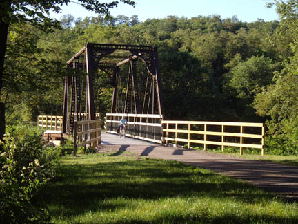 This historic 135-year-old cast-iron Bollman bridge once carried the B&O railroad over Wells Creek. It has been moved to carry the Great Allegheny Passage over Scratch Hill Rd.