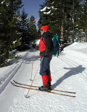 Just upstream from this narrow point we were able to get out of the wind (mostly) and eat lunch. At this point it was clear that snow conditions were against us and N45W111 would have to wait for another time. So we enjoyed the view, took a few pictures (until the batteries on the digital camera declared that it was too cold), and turned around. Re-opening the trail in our inbound tracks was much easier than breaking fresh trail, and we had time to ski out the Fawn Pass trail a little distance before returning to the cars.